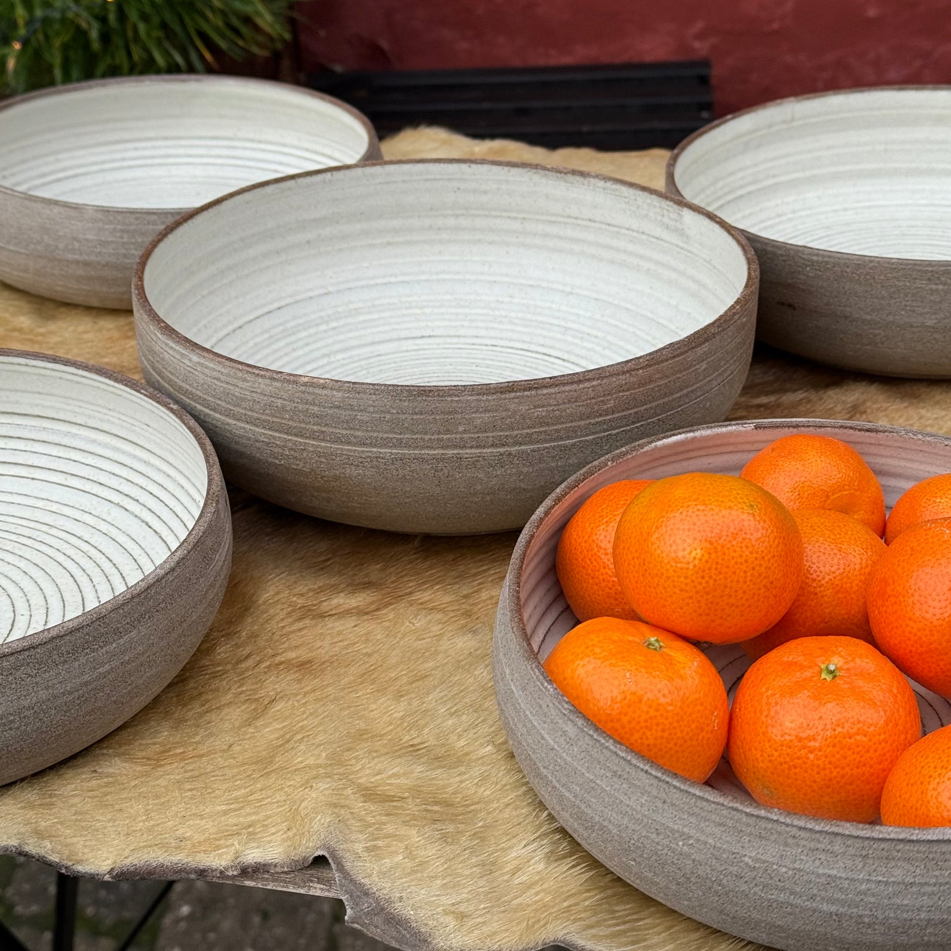 Fadene/skålene er hånddrejet og ikke to er ens.