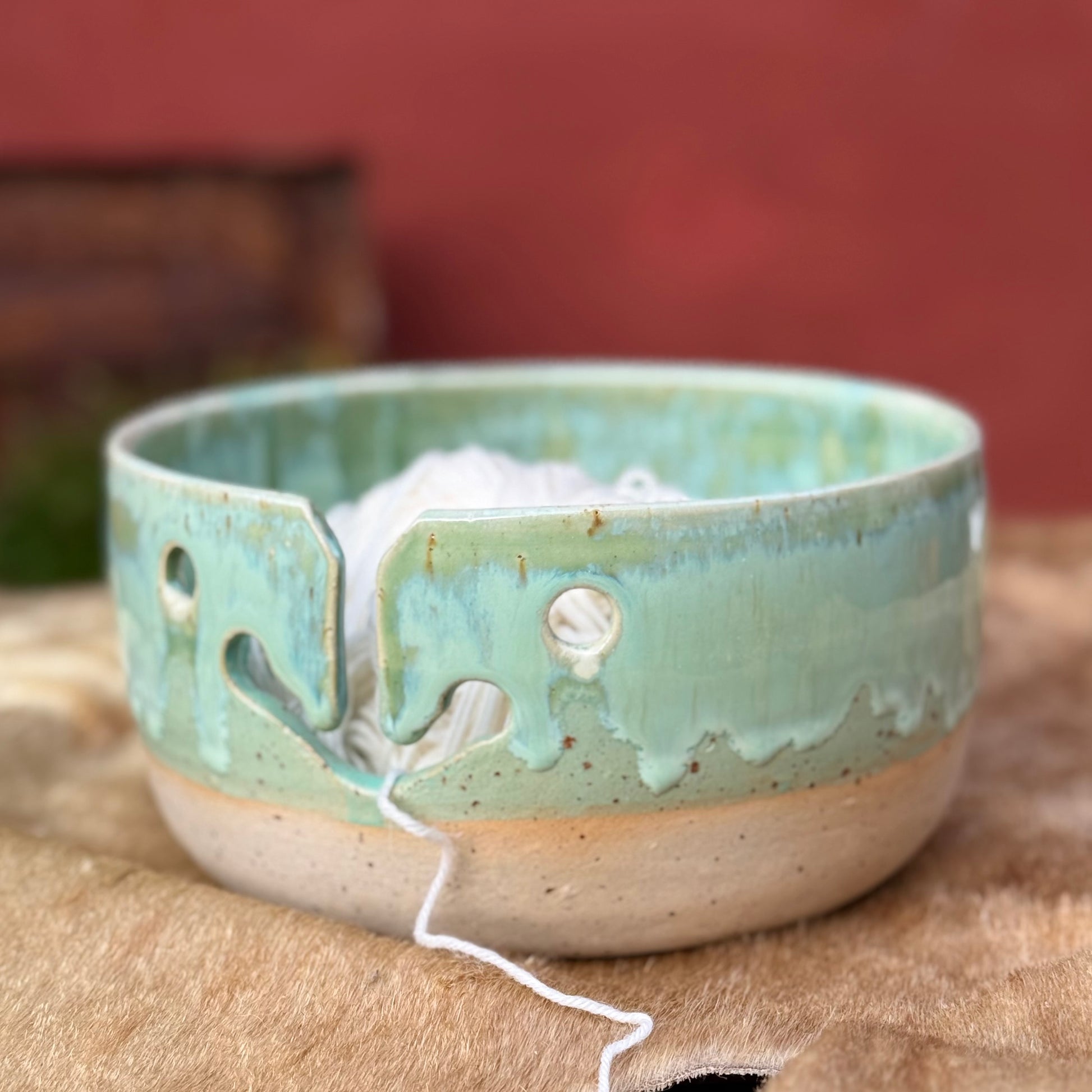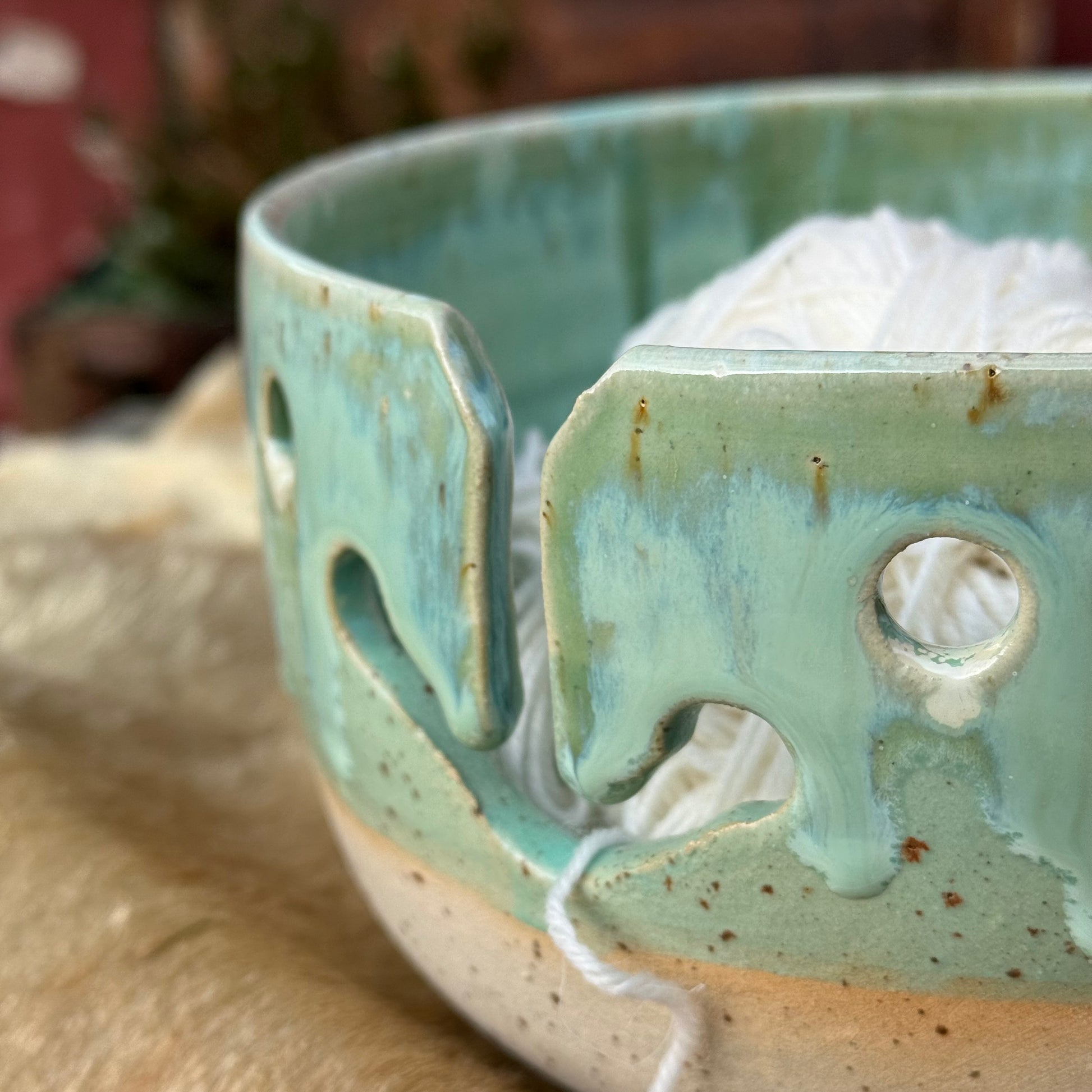 Super smuk garnskål/strikkeskål i stentøjsler.