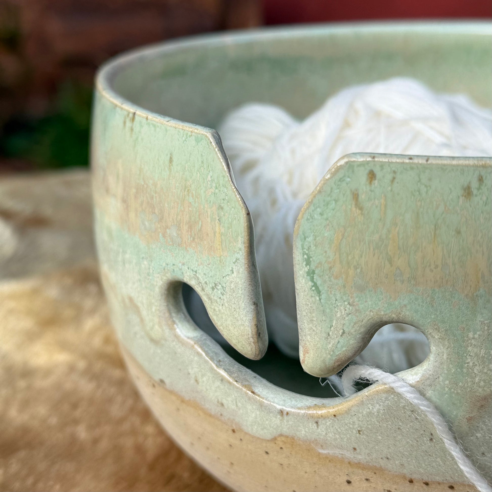 Super smuk garnskål/strikkeskål i stentøjsler.