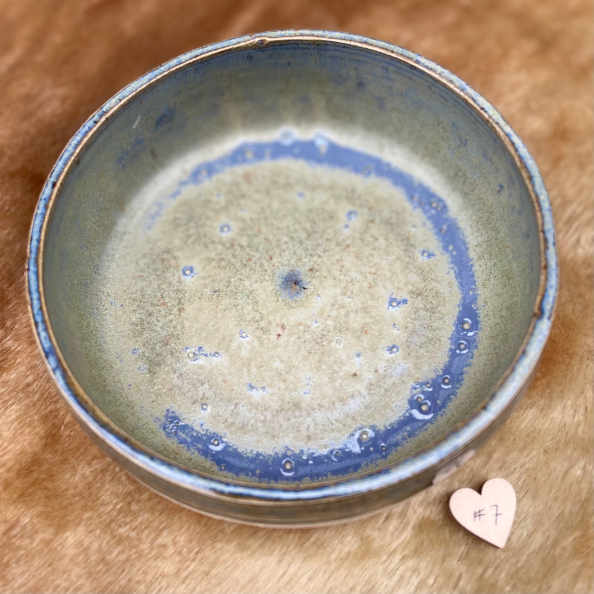 Hånddrejet og håndglaseret i stentøjsler. Skålen måler cirka 13-14 cm. i diameter og 4-4,5 cm. i højden.