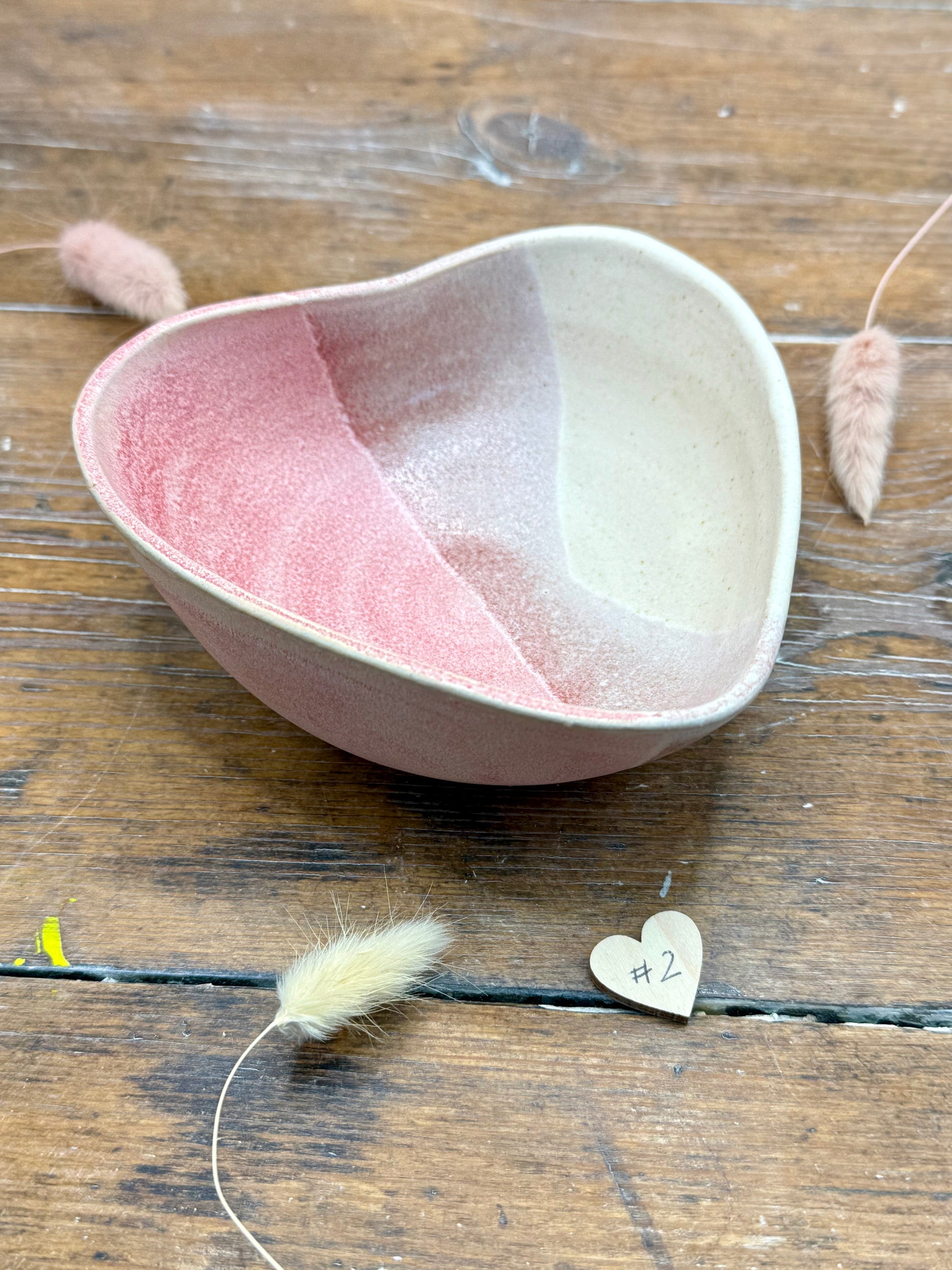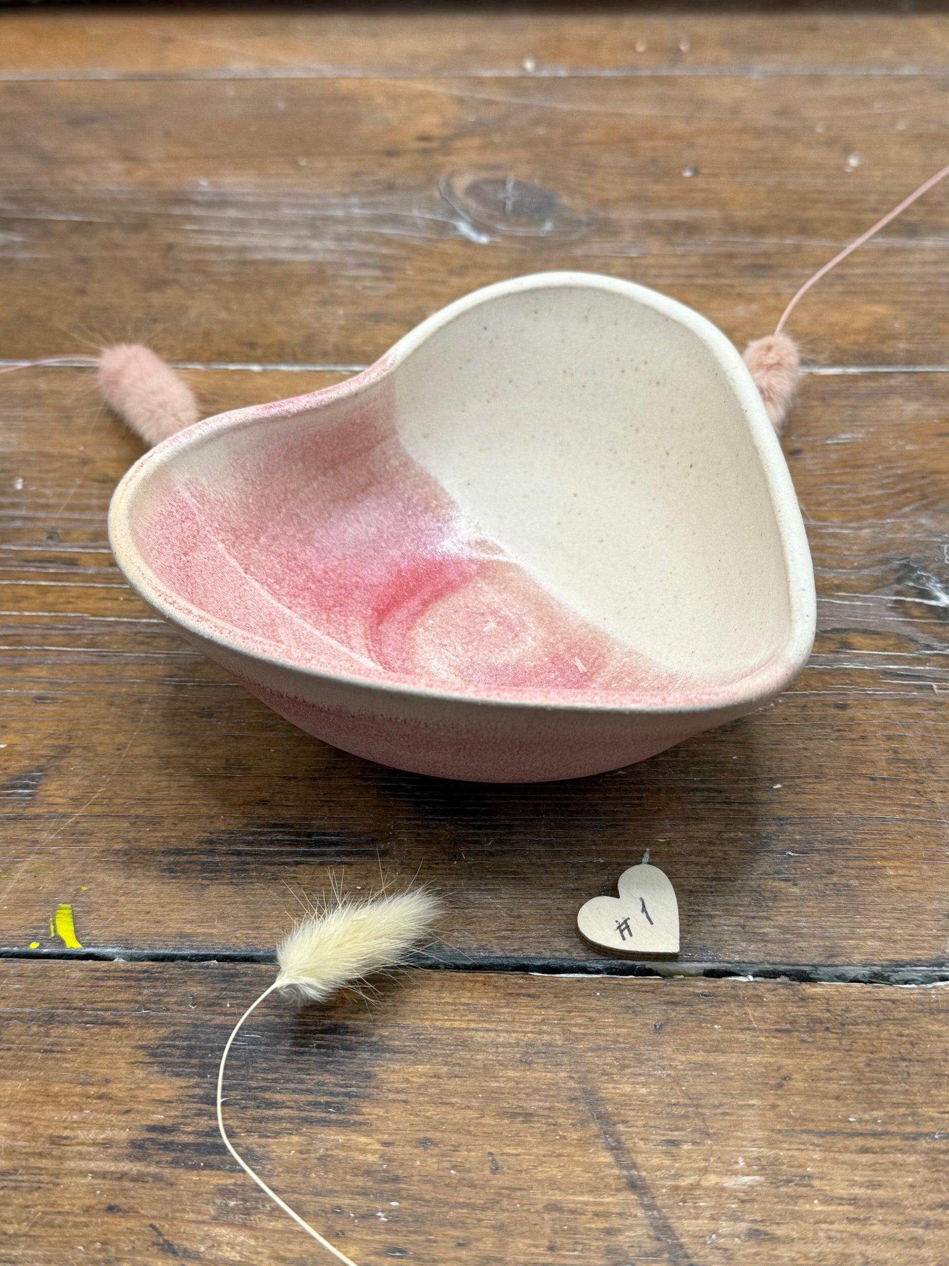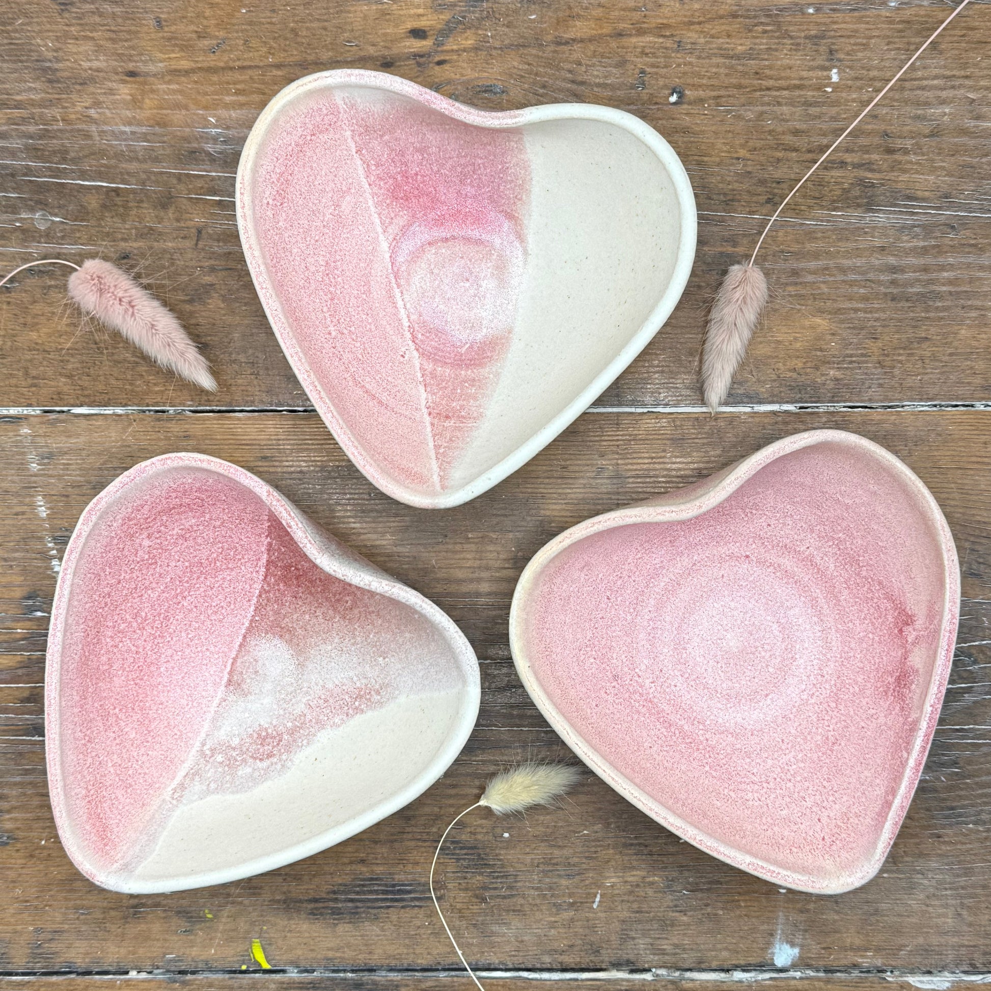 En sød og romantisk hånddrejet skål i stentøjsler formet som et hjerte. Skålene måler cirka 12-13 cm. i diameter og er ca.5 cm høje.
