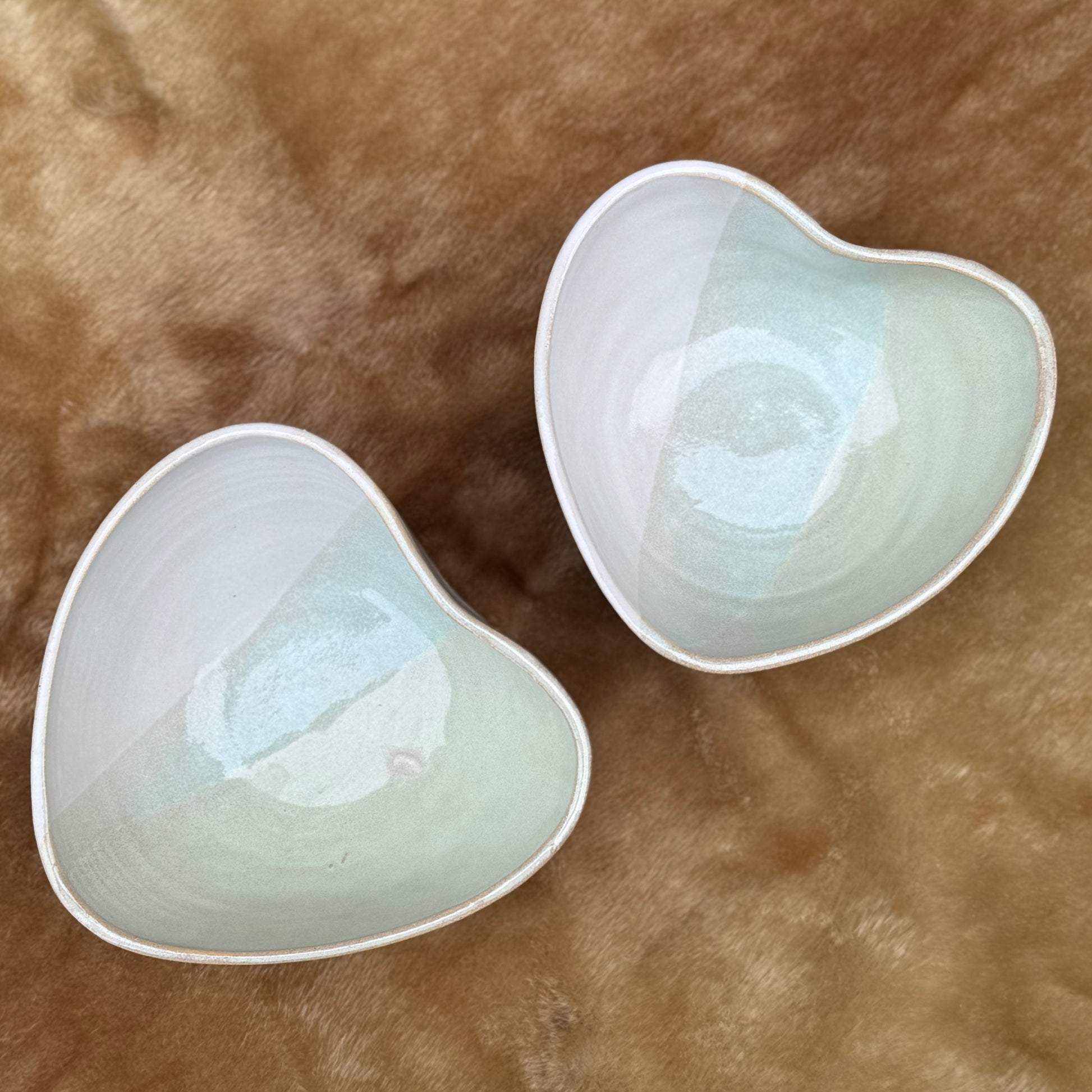 En sød og romantisk hånddrejet skål i stentøjsler formet som et hjerte. Skålene måler cirka 12-13 cm. i diameter og er ca.5-6 cm høje.