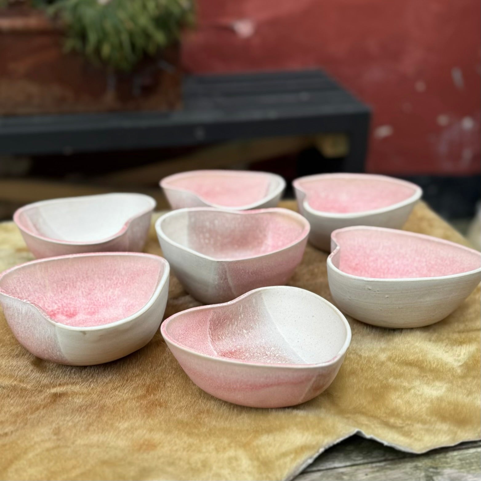 Hjerteskål (lyserød/hvid)